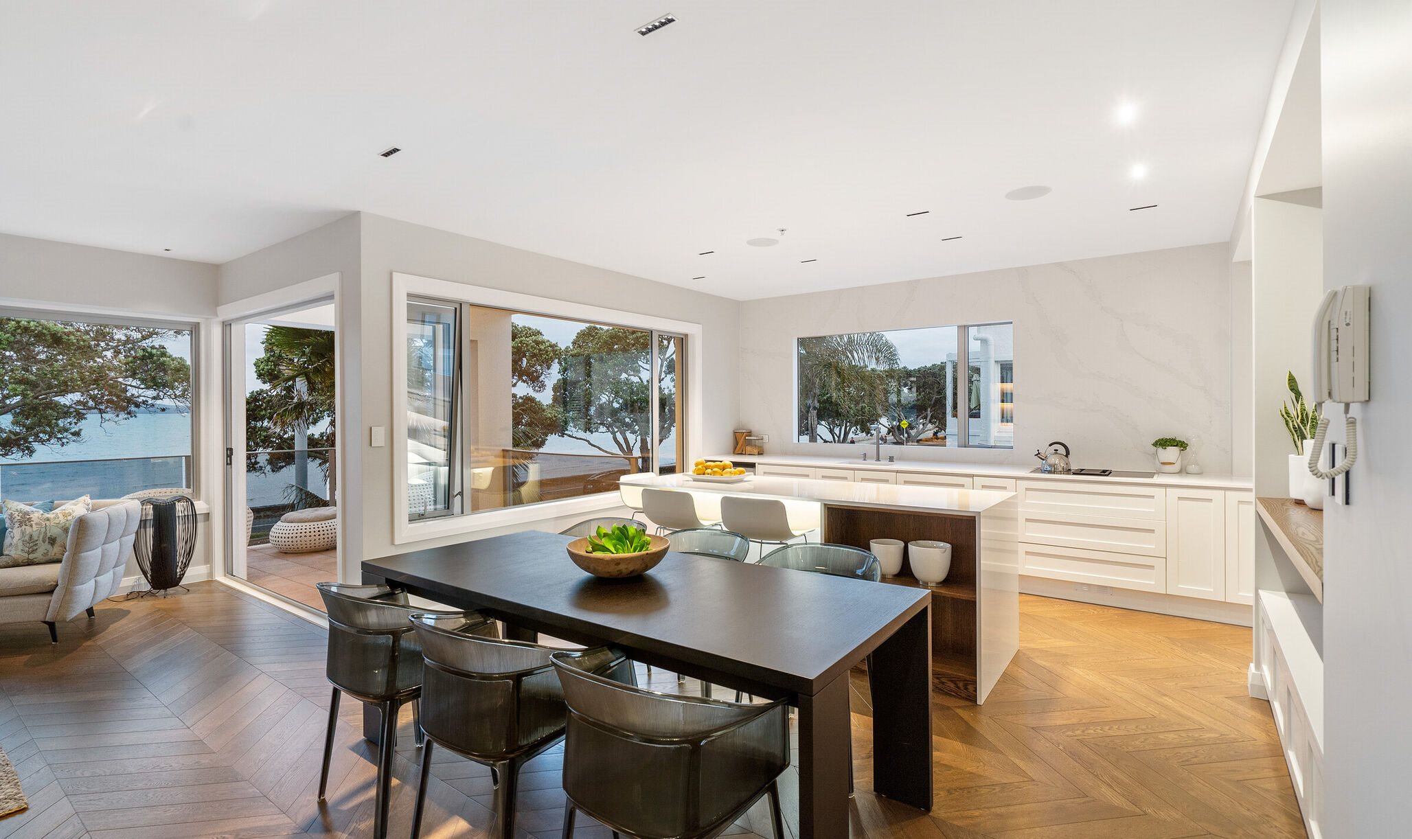 We love the way they have utilised the view with one of our large 4.7 meter wide triple sliding windows. Beautiful views like these deserve less walls in the way and need more glass to really open up their space.